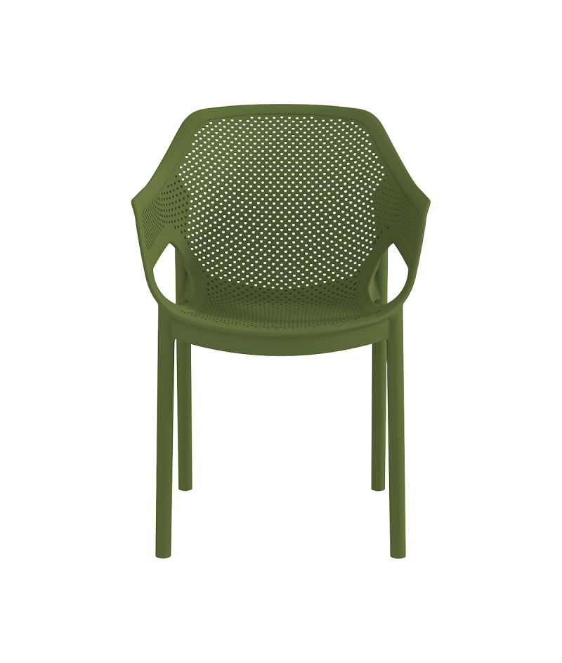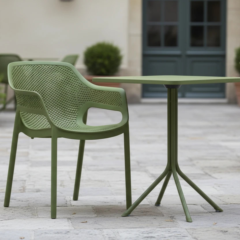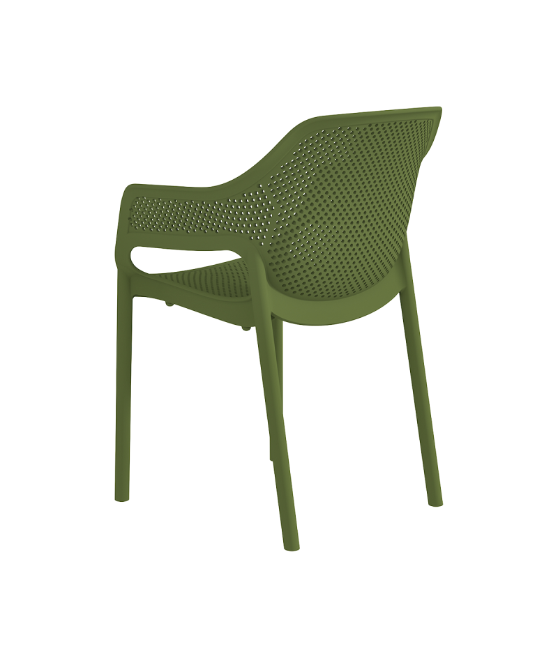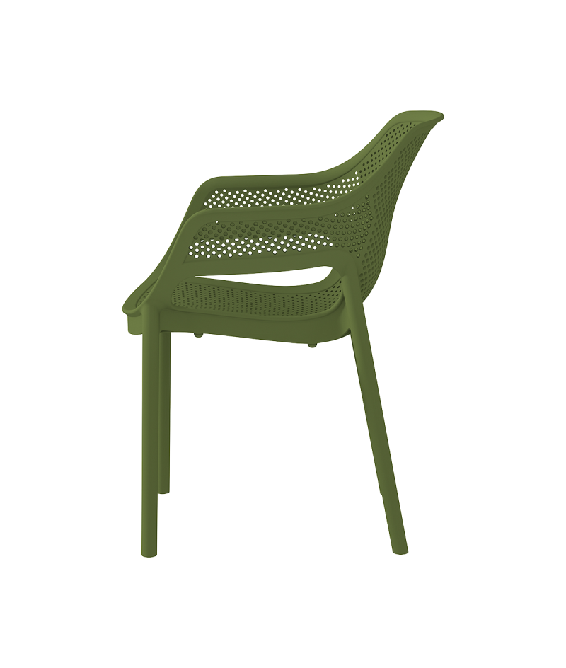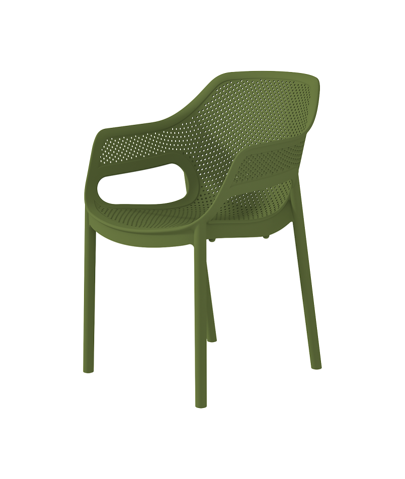 Outdoor stolička Mextra Aero je ideálnou voľbou pre reštauračné terasy, beer gardeny, bary, bistrá aj hotelové exteriérové zóny. Moderný perforovaný dizajn dodáva priestoru ľahký a vzdušný charakter, zatiaľ čo ergonomické podrúčky zvyšujú komfort hostí.