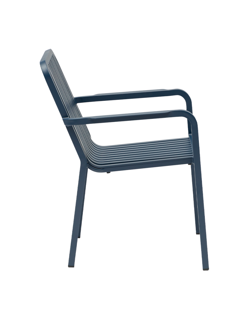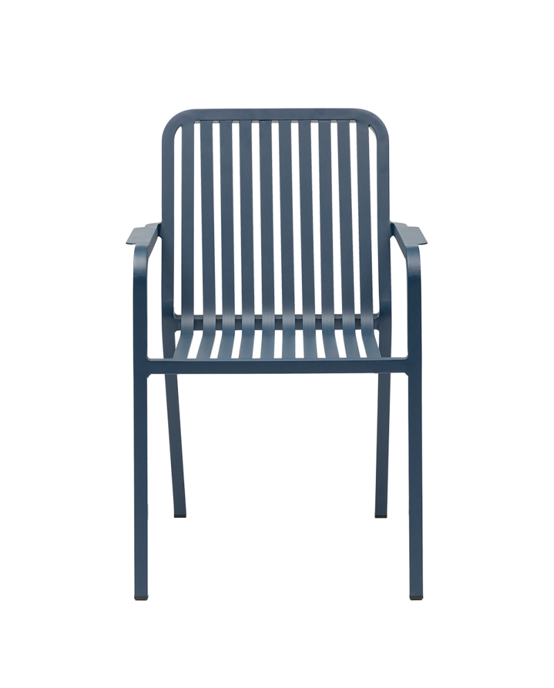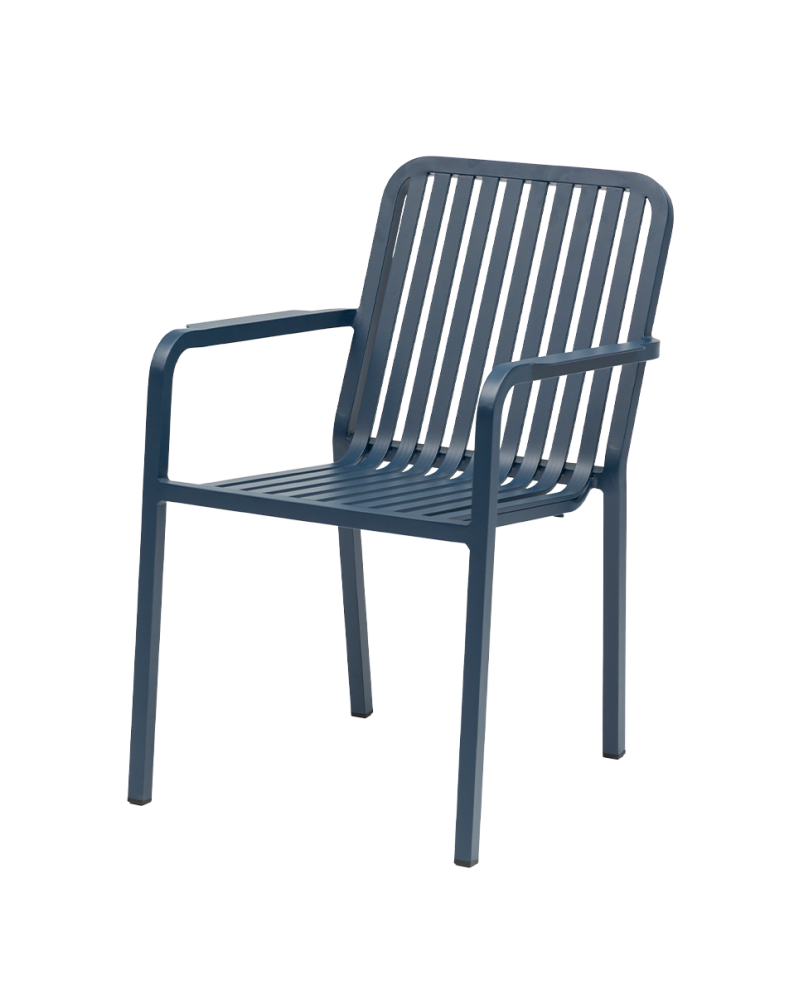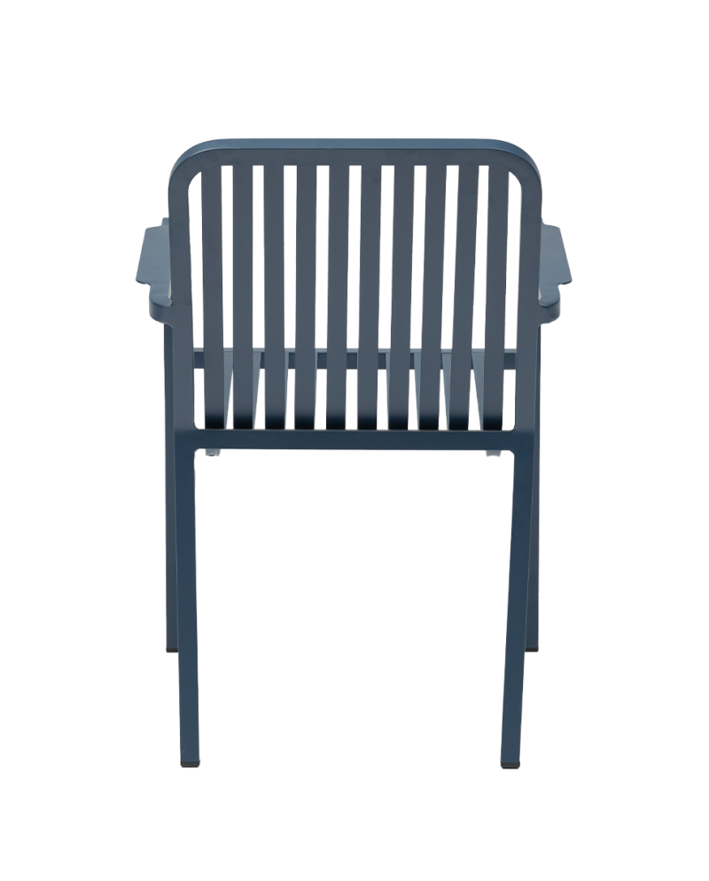 Stolička má pevný hliníkový rám, ktorý zaručuje vysokú odolnosť voči poveternostným podmienkam a dlhú životnosť. Konštrukcia operadla s vertikálnymi lamelami zabezpečuje dobrú stabilitu, komfort pri sedení a zároveň príjemnú priedušnosť počas teplých dní.