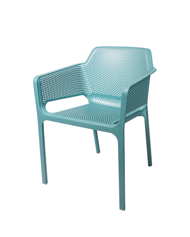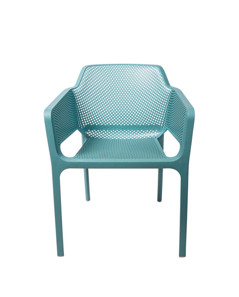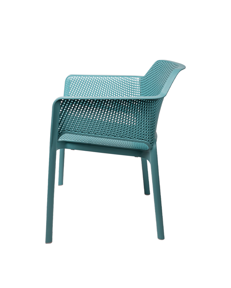 Outdoor stolička Nardi Net je moderná a pohodlná stolička určená pre reštauračné terasy, kaviarne, bary a ďalšie priestory HoReCa. Minimalistický dizajn s perforovanou štruktúrou dodáva priestoru ľahký a elegantný vzhľad a zároveň zabezpečuje vysoký komfort sedenia.