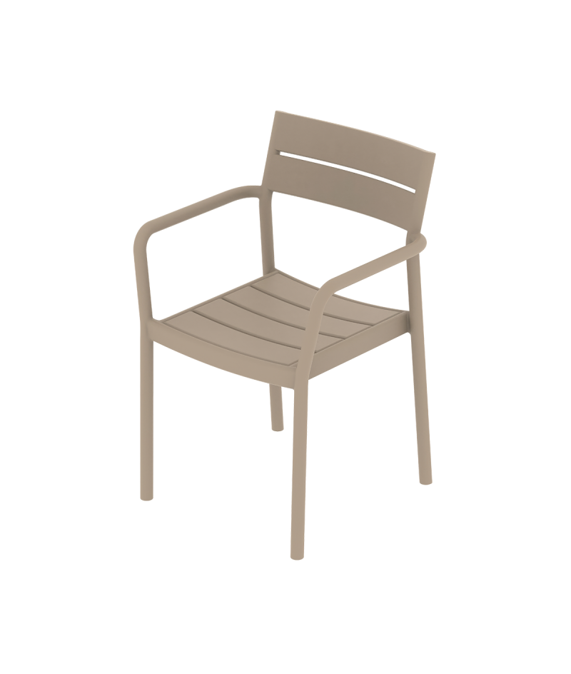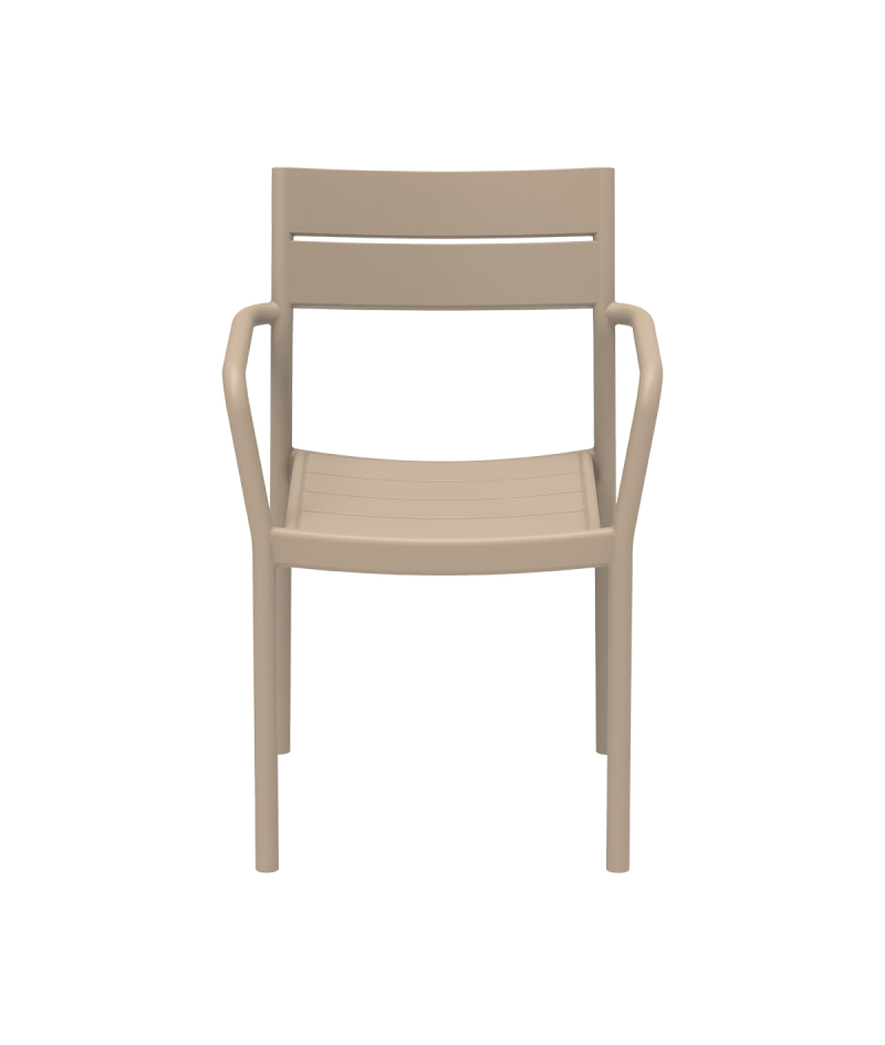 Outdoor stolička Mextra Capri Arm je praktickým riešením pre reštauračné terasy, beer gardeny, bary, bistrá aj hotelové oddychové zóny. Moderný dizajn s charakteristickým operadlom a integrovanými podrúčkami poskytuje vysoký komfort sedenia a zároveň elegantný vzhľad.